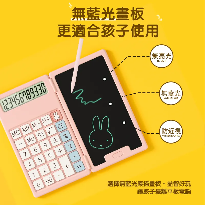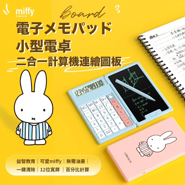 miffy 便攜折疊式二合一手寫板連計算機-粉紅色 預購產品預計 15-20工作日發貨