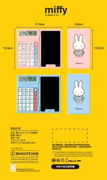 miffy 便攜折疊式二合一手寫板連計算機-藍色 預購產品預計 15-20工作日發貨