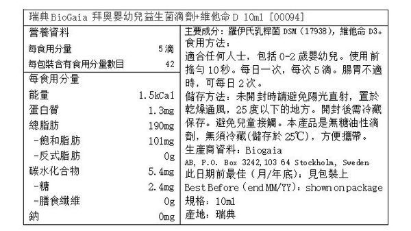 BioGaia - 瑞典拜奧 - 嬰幼兒益生菌滴劑 10ml 添加維他命D3 (EXP 10-2026年)[平行進口]