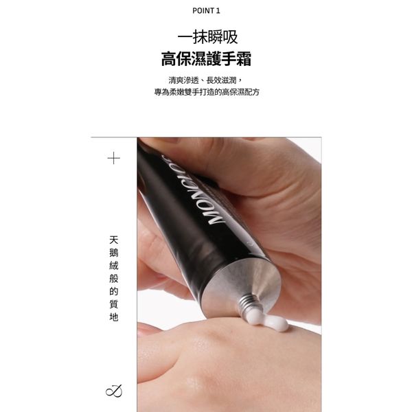 天鵝絨般質地:延展性高、吸收快、不油膩,擦完立即滑手機也不留殘感。