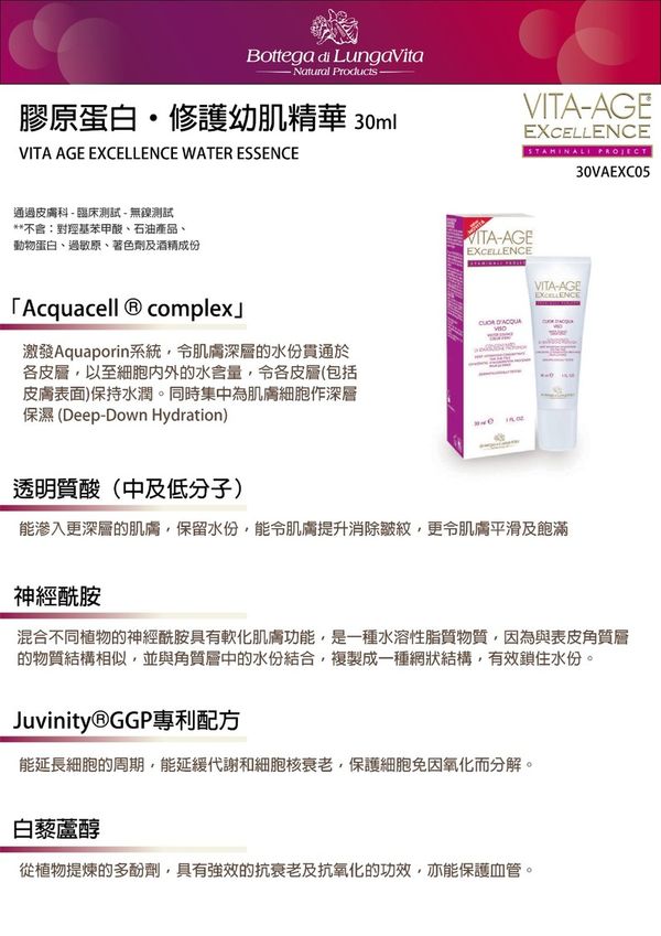 「Acquacell Complex」、Juvinity GGP專利配方、白藜蘆醇、透明質酸(中及低分子)