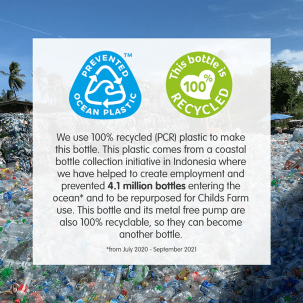 產品的瓶子都採用 100% 海洋塑膠廢棄物回收製成