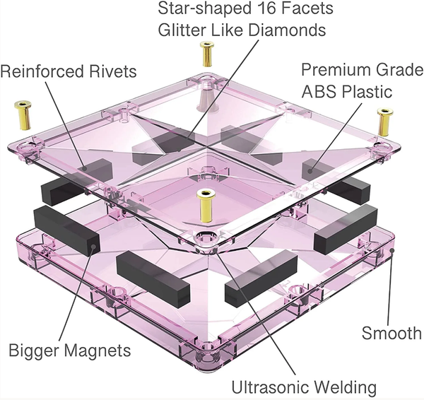 磁力片係時下流行的玩具,不僅可以供小朋友玩樂,重點是可以從知識、記憶、動手多方面鍛煉,快速成長。豐富色彩及透明設計吸引小朋友目光之餘,對佢地腦部處理顏色既區域發展有莫大既益處。有不同型狀既磁力片,能夠砌出不同型狀,發揮小朋友既創意及無限既像力。