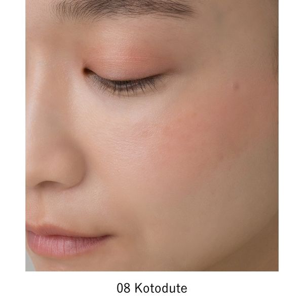 08傳達〈Kotodute〉:細微的白色珍珠為桃色增添濕潤光澤。與膚色融合的裸色調,為表情帶來純淨血色感。