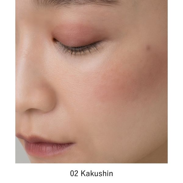 02核心〈Kakushin〉:融合金色亮片的感性紅棕色,適合想在腮紅、眼妝或唇彩中添加戲劇性紅色時使用。