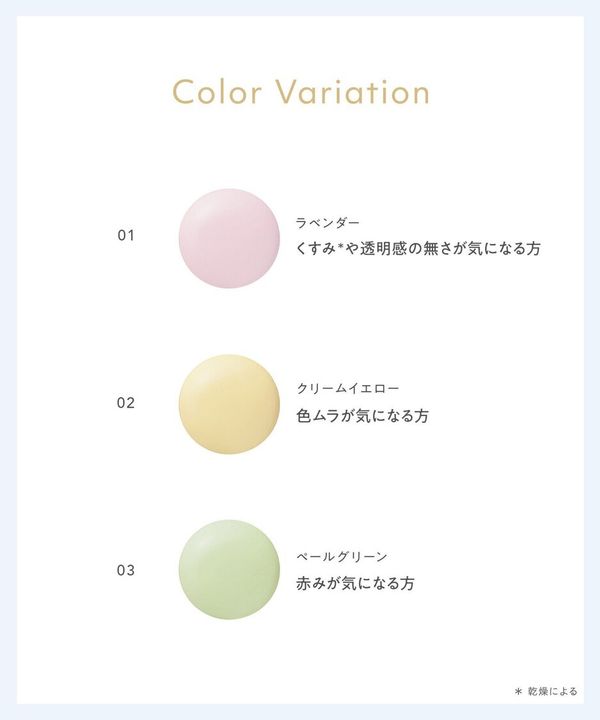 01 薰衣草:修飾暗沉,呈現自然血色與透明感*1的明亮肌膚