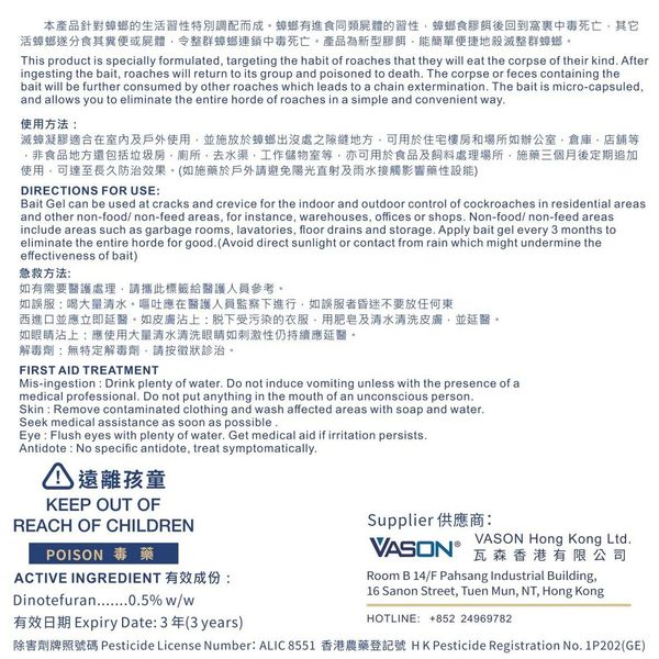 德國巴斯夫速克力0.5%殺蟑膠餌 曱甴藥餌 30g