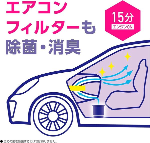 ●這是一種消毒/除臭劑,利用藥物擴散系統將微小的藥物顆粒擴散到每個角落,徹底清除車內的細菌和異味。 *它不能殺死所有細菌。
