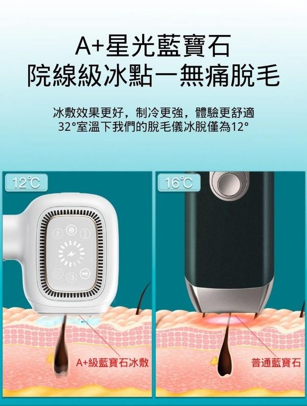 1、德國海曼光電技術,脫毛安全更徹底! A+級藍寶石冰片,全程0痛感脫毛!