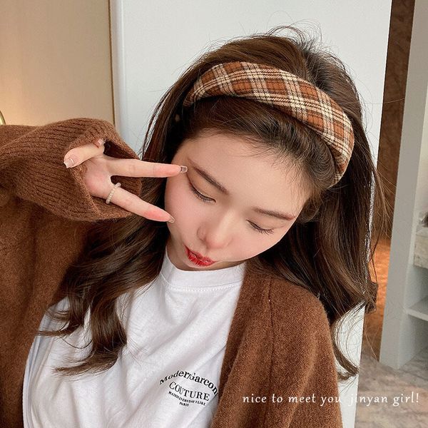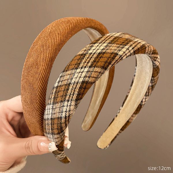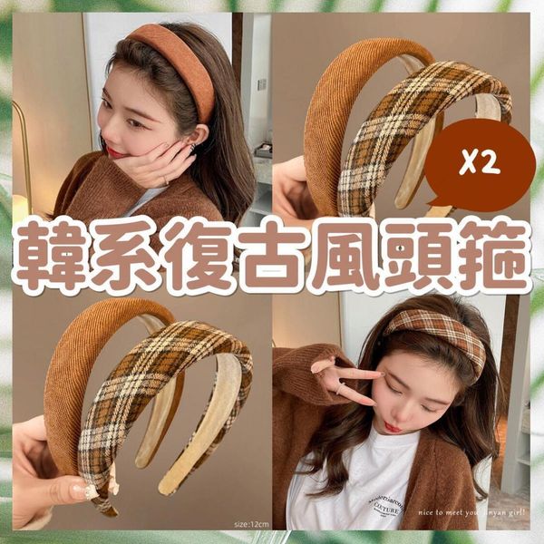 2個 韓系復古風頭箍寬邊頭箍 奶茶色髮箍 格子頭髮 復古派對 化妝頭飾 裝飾 森林系少女髮箍 氣質可愛寬髮箍 簡約百搭 闊頭箍 法式頭箍 (2款/2個裝)