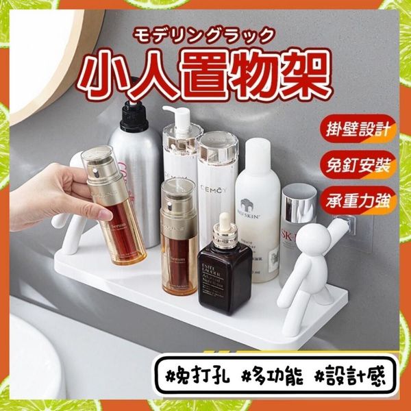 多功能免打孔小人置物架 黏貼壁掛置物架 超穩防水浴室置物架 收納架 置物架 壁架 整理架 壁掛架 置物櫃 吊櫃 書架 書櫃 裝飾設計創意家品(白色)