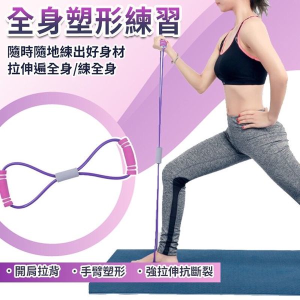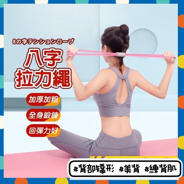 健身鍛鍊八字拉力繩 健身器材 瘦身keep fit 馬甲線 蜜桃臀 美胸收腰 瘦腿 背部矯形 美背 練背肌 雙色八字拉力器(粉紅色) 拉伸器