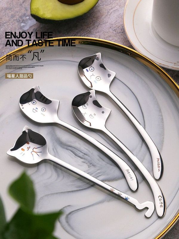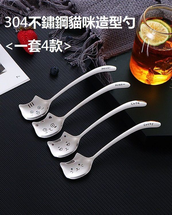 (一套4款) 304不鏽鋼可愛貓咪造型匙羹 雪糕匙羹 甜品匙羹