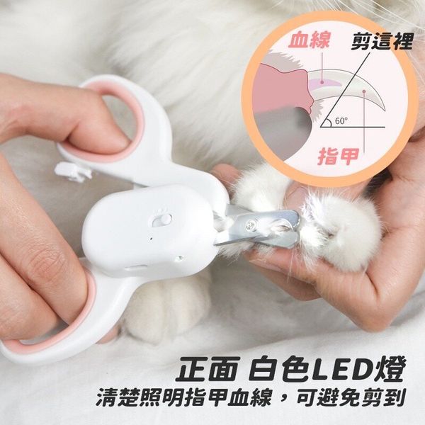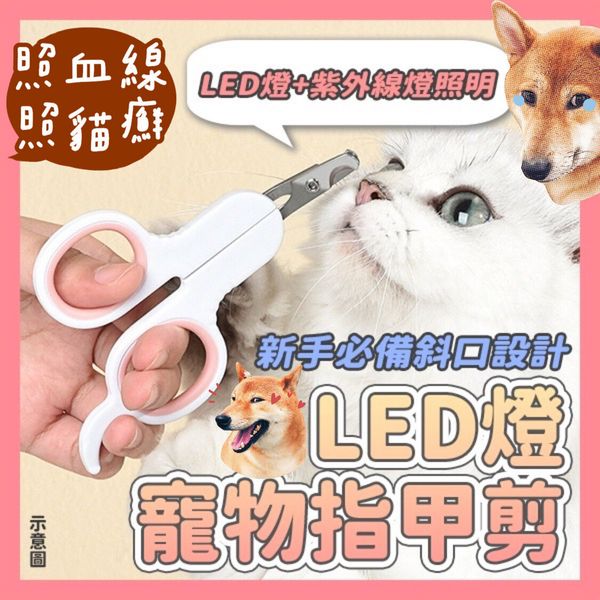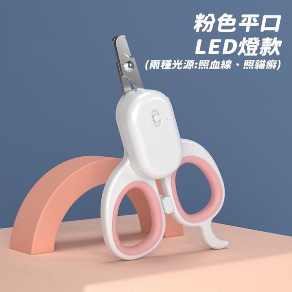 照血線 照貓癬 多用途專業寵物指甲剪 寵物用品斜口彎頭斜角貓咪狗狗兔子天竺鼠小型犬中型犬安全剪刀修甲刀LED發光美容清潔磨甲修甲器指甲鉗 LED燈照血線指甲鉗-平頭 粉-(帶燈小貓剪 指甲護理