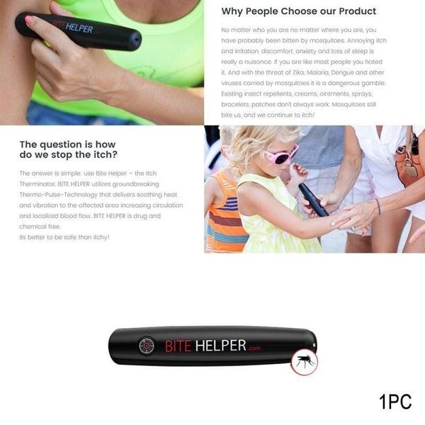 ● 採用熱脈衝技術,30秒止癢又能破壞蚊蟲叮咬所注入體内的蛋白質● 有效舒緩由蚊, 蒼蠅、 蜜蜂、 螞蟻、黃蜂和昆蟲的叮咬● 採用物理性止痕, 不含藥物和化學成分!無毒而且對皮膚溫和!4歲以上可使用。● 使用簡易,一按止痕!● 可重複使用!產品採用兩粒AA供電,可連續使用約100次● 通過美國防蚊協會及FDA認證