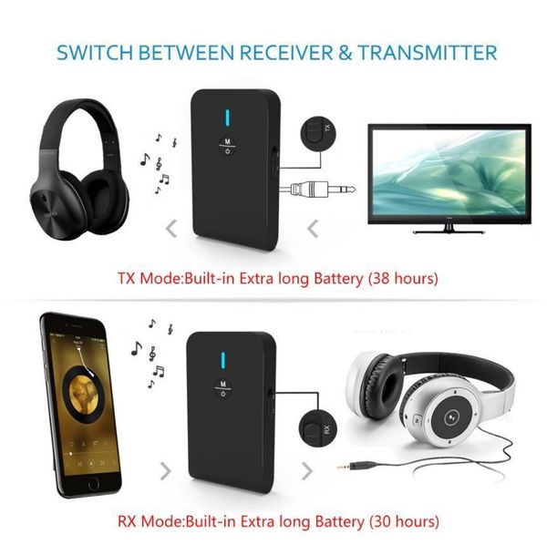 2合1藍牙發射器和接收器將3.5mm音頻輸出媒體設備轉換為能夠傳輸的藍牙設備低延遲的傳輸