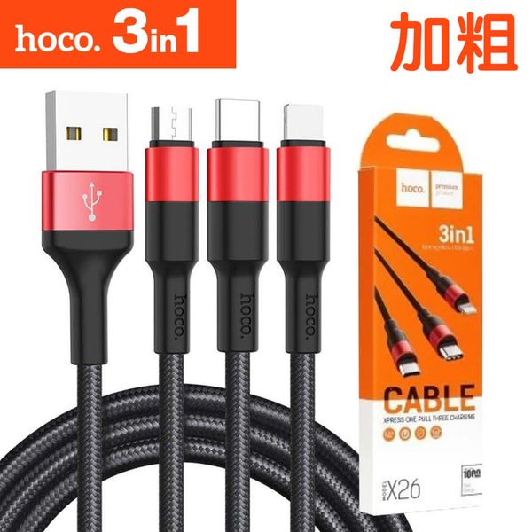一拖三充電線 1m快充線 安卓蘋果type-c 快速充電編織布藝數據線 iPhone充電線 三合一充電傳輸線 -黑紅色