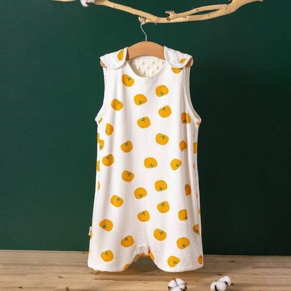 兒童純棉防踢被睡袋保暖防踢背心 安全物料 無添加 無螢光劑 無袖睡袋 柔軟舒適豆豆絨背心式睡袋 背心睡袋 寶寶防踢被四季被 無袖睡袋-小柿子(衣長60cm/適用於0-2歲) 連身衣