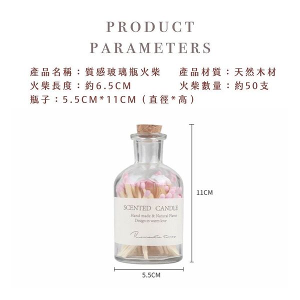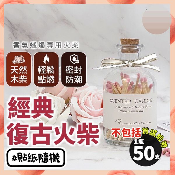 50支 香味火柴 香氛火柴 復古裝飾火柴瓶 薰香火柴 香薰蠟燭專用火柴 安全火柴 復古火柴 香氛蠟燭火柴 入伙禮品 入伙禮物 閨密禮物 小禮物 香氛香薰蠟燭火柴玻璃瓶(粉紅色/50根裝) 香薰蠟燭