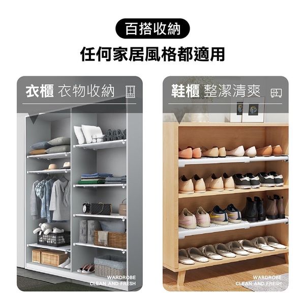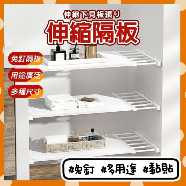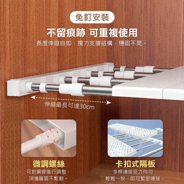 免釘孔衣櫃伸縮隔板 黏貼廚櫃伸縮隔板 免釘衣櫃隔層分層隔板 居家收納隔層架 收納架衣櫥鞋架撐架隔層 板 櫥櫃置物架 隔板衣櫃分層隔板(白色/長23-30cm/寬24cm)
