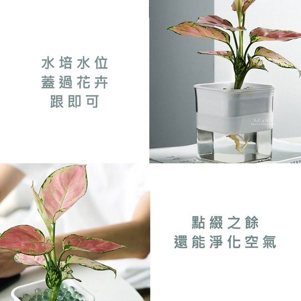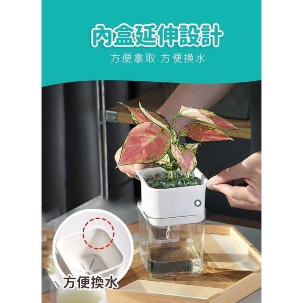 自動吸水透明水培花室內盆栽 小溫室 室內自動淋水盆栽 自動耍水 懶人盆栽 花盆 盆栽 塑膠盆 自動吸水不須每天澆水 風格簡約時尚美觀養殖自動吸水花盆(白色)