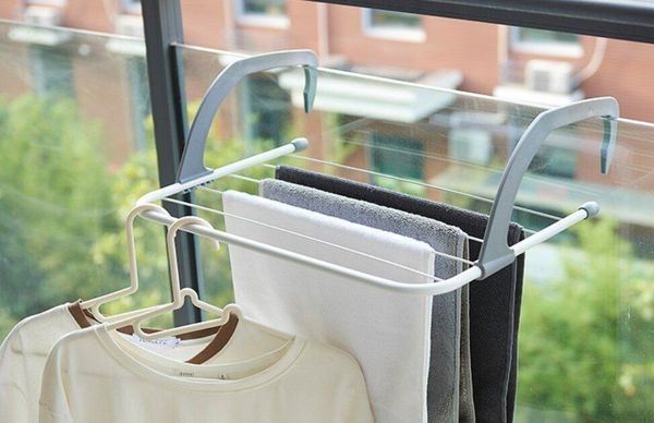 多功能折疊陽台晾曬架 輕鬆掛式 窗台晾曬衣架 暖氣機曬襪架 曬鞋架 毛巾架 晾衣架 窗臺曬衣 灰色 晾衫架 晾衣架