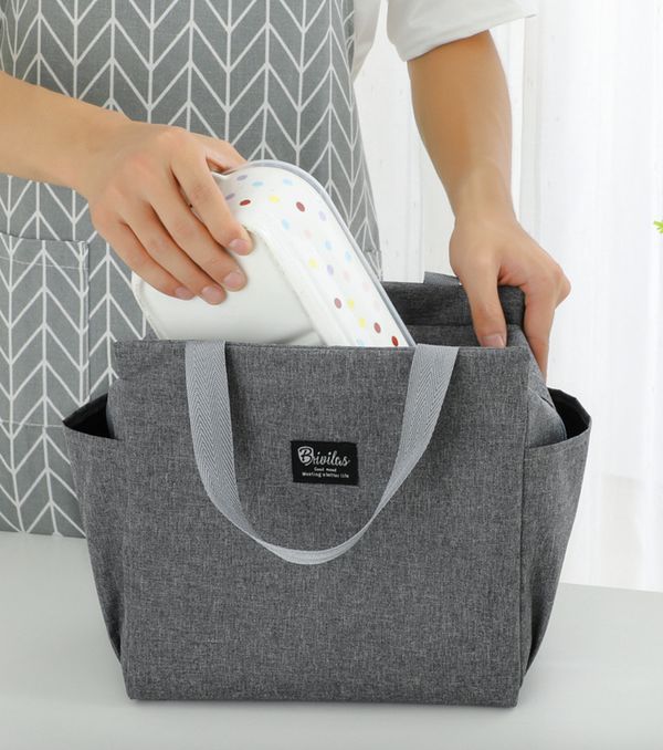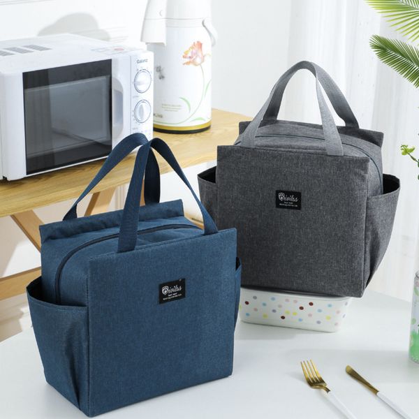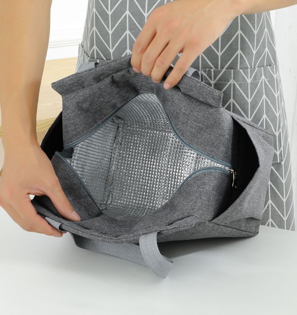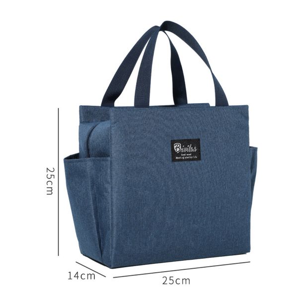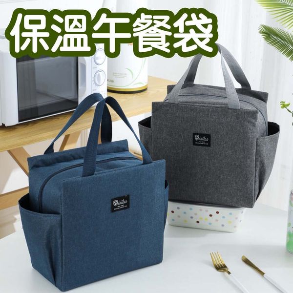 午餐包保溫雙口袋大容量飯袋便當包飯盒包 藏青色 lunch袋 午餐袋 便當袋