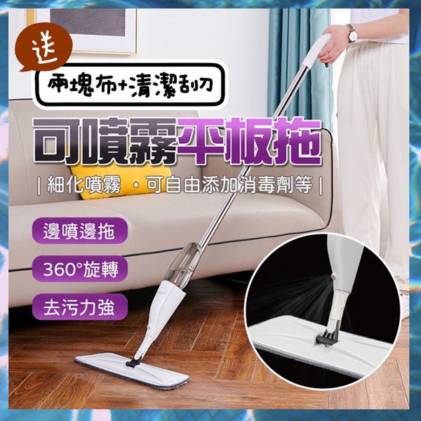 送兩塊布送+清潔刮刀 二合一噴霧平板拖把 乾濕兩用平板拖 360°懶人拖把 二合一平板拖 吸水拖把 噴水拖把 懶人平板拖把 大掃除用具 地拖加掃把 地拖掃把 地板清潔 家用免手洗噴霧平板拖把(送兩塊布