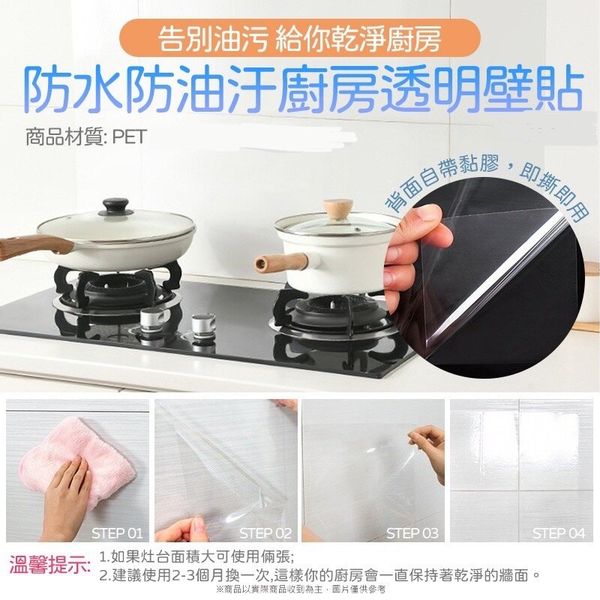 3張 廚房防油污透明貼紙 自由剪裁牆貼防水貼 透明廚房防油貼 壁貼 防油貼 防水貼 防髒清潔貼 易潔透明防油貼紙(68*45cm/透明/包裝顏色隨機/3張套裝)