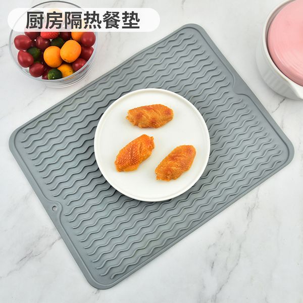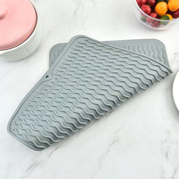 矽膠碗盤瀝水/隔熱墊 可折疊防滑餐墊 塑膠隔水 多功能防滑可折疊收納矽膠瀝水隔 廚房必備 易於收納 硅膠防滑墊耐高溫護墊 尺寸:40x30x5cm 多條排水板的獨特設計能以最的大程度排水與讓空氣流通,利於水分快速蒸發。 具有防滑凹槽的表面能使杯子和碗碟保持直立,利於保持器皿乾燥。 由耐用的有機矽製成,易於清潔。可用水和洗碗液清洗或放入洗碗機。 材質柔軟,可以捲起來並帶有固定紐扣,方便收納,節約厨房的空間。 可放在水槽旁邊,以便可以將洗過的碗碟和餐具直接放在水槽上。餐具和餐具乾燥後,將它們放回櫥櫃,將墊子上剩餘的水倒入水槽中即可。 高品質硅膠製造,安全無毒,結實耐用,不易變形。