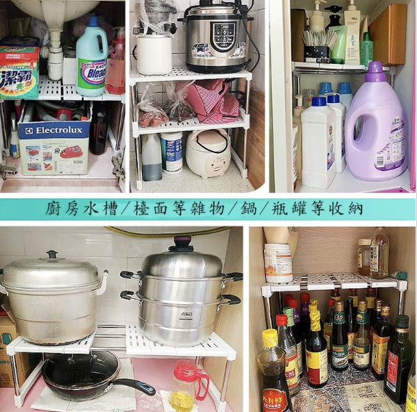 不銹鋼廚房伸縮置物架 衣櫃隔板 可伸縮 可叠加 櫥櫃下櫃子收納分層架 鞋架 廚房收納分層 電腦支架【中款: 長28.5-36CM 寬26 高33】