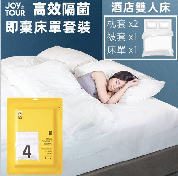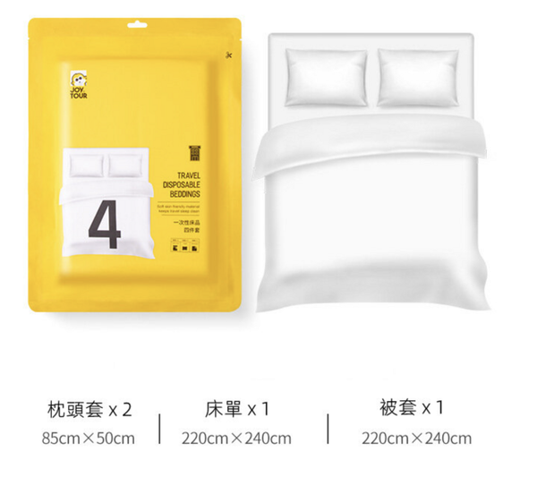 旅行一次性床單套裝 (4件套) 枕套x2 床單x1 被套x1 防菌即棄床單 雙人床床笠 酒店旅行隔離 其他旅行配件