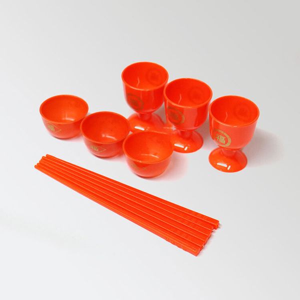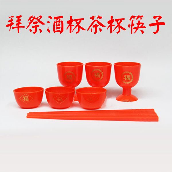 拜祭杯子掃墓拜山塑料紅碗筷拜佛酒杯茶杯碗筷子酒壺供台祭祀擺桌 酒杯、茶杯、筷子 (套裝)