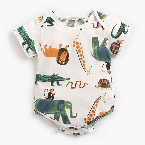 嬰幼兒包屁衫 寶寶連體衣 嬰兒哈衣 卡通三角衣 bb底衫 bb打底衫 bb夏季衫 寶寶衣服 動物印花嬰兒包屁衣 新生兒連體衣 包屁衣爬服 哈衣寶寶衣服 動物印花嬰兒包屁衫(白色動物森林/6-12m適用