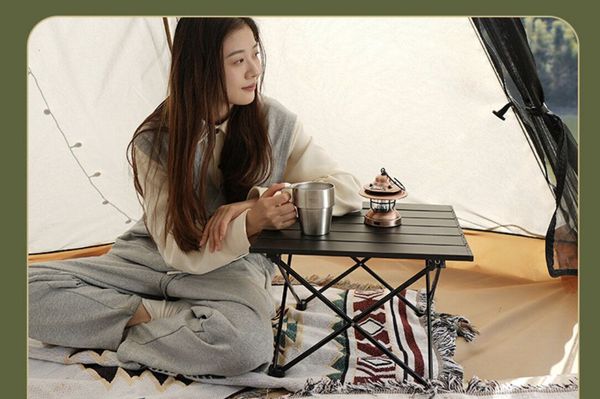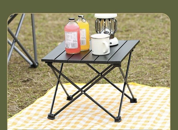超輕鋁合金摺疊露營桌 便攜桌 折疊桌 蛋捲桌 懶人桌 野餐桌 鋁合金折疊桌 露營枱 摺疊枱 細枱 戶外枱 野餐枱 露營戶外折疊桌 (黑色/40*35CM) 摺椅
