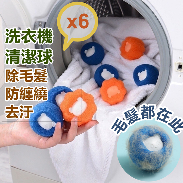 【養寵物必備】洗衣機吸毛清潔球 可重用洗衣球 吸貓毛 吸頭髮 吸狗毛 去黏毛 乾衣機過濾毛球 防黏濾除毛器去污防纏繞洗衣機清潔球 黏毛器(六個裝)