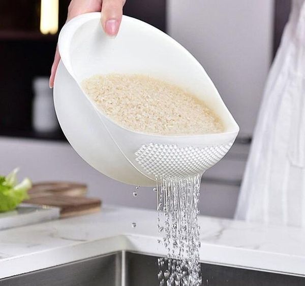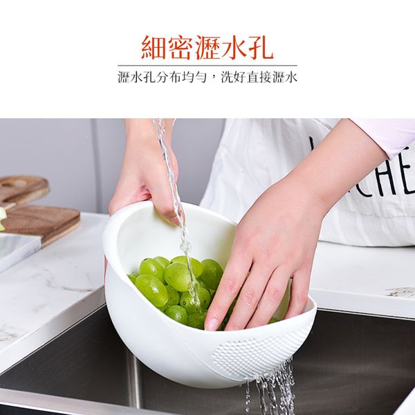 多功能洗米瀝水籃 蔬果瀝水籃 洗米篩 淘米器 洗米籃 廚房洗米籃 洗菜盆 蔬菜盤 果蔬瀝水籃 洗菜籃 淘米籮 密孔多功能瀝水籃 廚房用品 洗菜籃(白色)