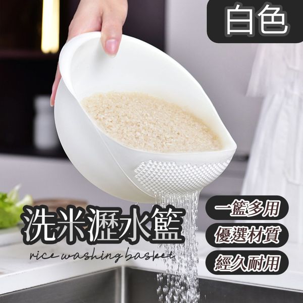 多功能洗米瀝水籃 蔬果瀝水籃 洗米篩 淘米器 洗米籃 廚房洗米籃 洗菜盆 蔬菜盤 果蔬瀝水籃 洗菜籃 淘米籮 密孔多功能瀝水籃 廚房用品 洗菜籃(白色)