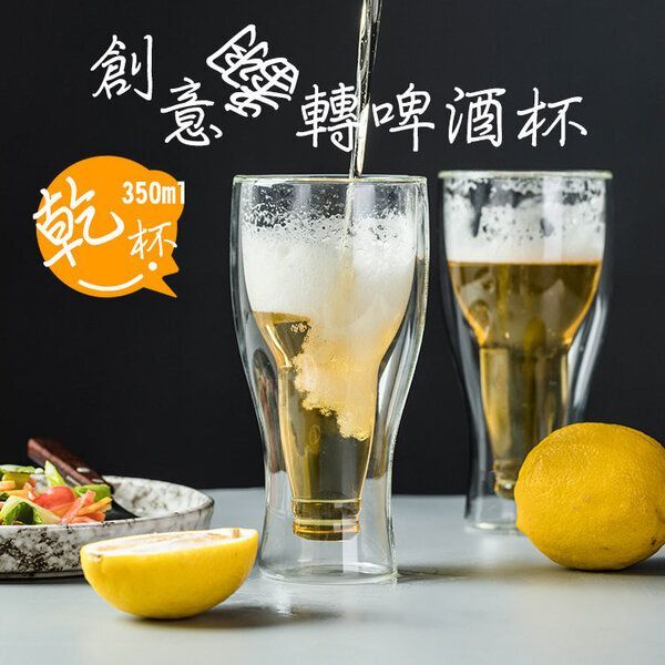 創意翻轉啤酒杯 啤酒杯 酒杯 歡慶 同樂 雙層啤酒杯 酒瓶反轉造型 啤酒杯