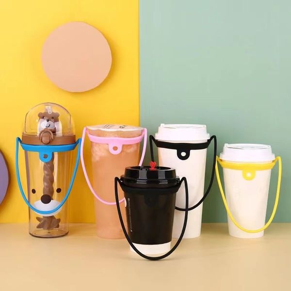 矽膠便攜奶茶杯帶 適用所有常見杯型 易清洗 食品級硅膠杯套繩子 可循環再用咖啡杯帶 水瓶套繩馬克杯矽膠拎繩 外出出街用手搖飲品杯隨行拎繩