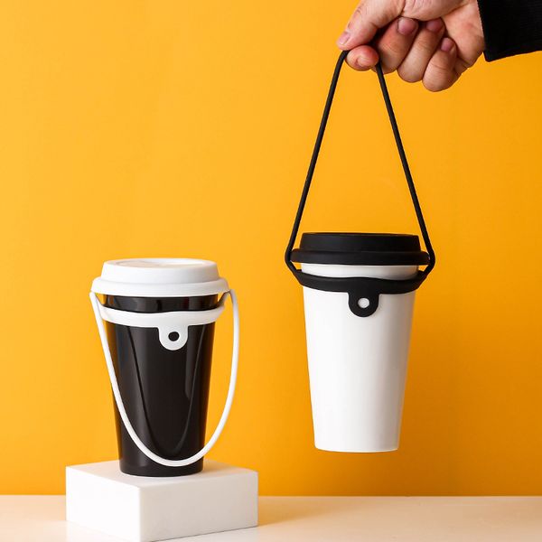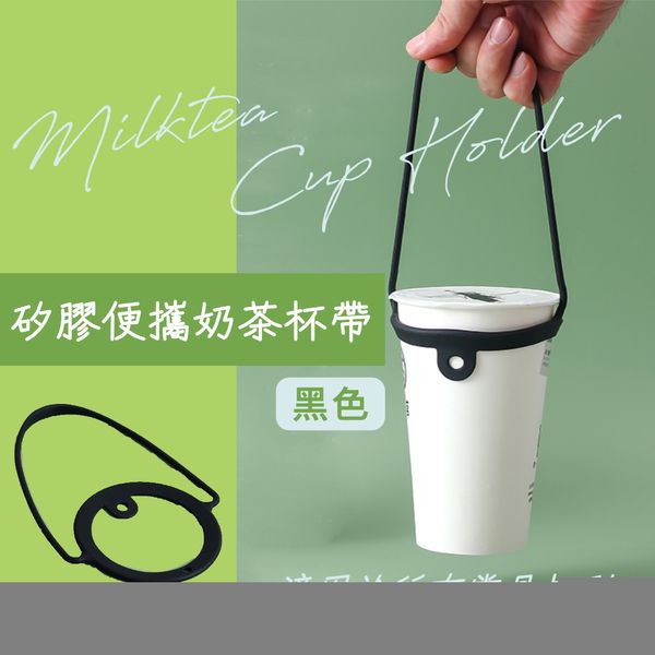 矽膠便攜奶茶杯帶 適用所有常見杯型 易清洗 食品級硅膠杯套繩子 可循環再用咖啡杯帶 水瓶套繩馬克杯矽膠拎繩 外出出街用手搖飲品杯隨行拎繩 (黑色)