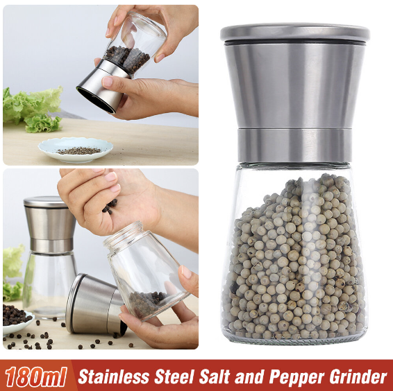 180毫升不銹鋼胡椒研磨器 手動玻璃研磨瓶 香料瓶 [平行進口] 調味料容器