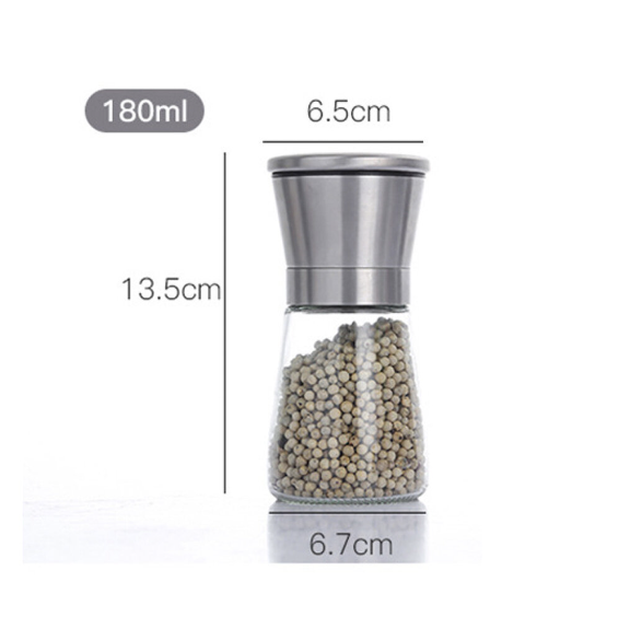 180毫升不銹鋼胡椒研磨器 手動玻璃研磨瓶 香料瓶 [平行進口]
