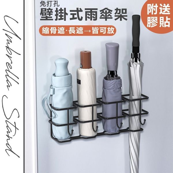 免打孔壁掛式雨傘架 長短通用 防生鏽遮架 縮骨傘長傘適用 玄關入戶門雨傘牆面收納架 客廳牆壁門口牆上置物架 縮骨遮長遮 家用掛墻放傘架(附送膠貼)