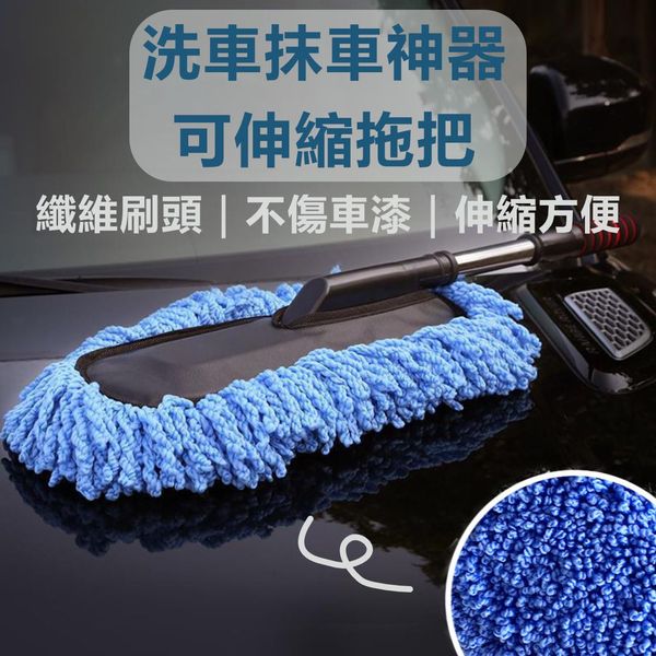 洗車抹車用可伸縮耐用拖把【藍色】|不傷車抹車專用工具|掃灰抹車神器|家車兩用掃|蠟拖|汽車清潔工具|除塵撣子|軟毛清潔刷|汽車用品|洗車刷|打蠟|小蠟刷|不鏽鋼|洗車神器|家居清潔拖把