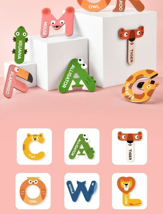 Mideer 動物字母磁貼 26個英文字母動物冰箱貼 英文字母磁力貼 ABC磁鐵 兒童英語學習教材套裝 兒童學習玩具 動物冰箱磁性貼(26個英文字母)