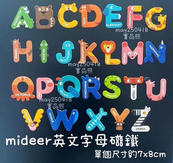Mideer 動物字母磁貼 26個英文字母動物冰箱貼 英文字母磁力貼 ABC磁鐵 兒童英語學習教材套裝 兒童學習玩具 動物冰箱磁性貼(26個英文字母) 磁石