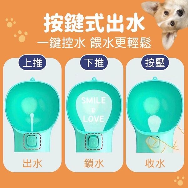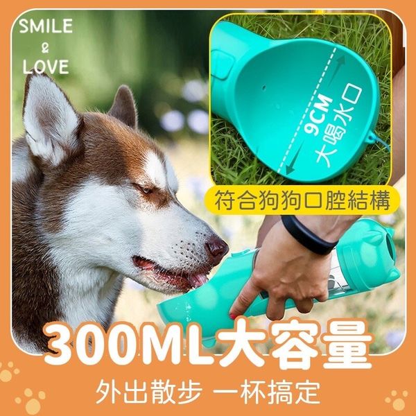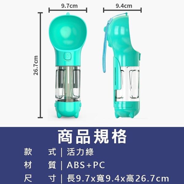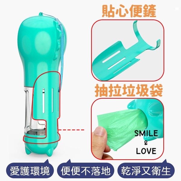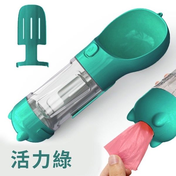 三合一寵物水壺 寵物外出水壺 寵物飲水 大便袋收納 便便挖鏟 寵物外出 寵物喝水 寵物隨行杯 狗狗喝水 貓貓水壺 寵物水瓶 寵物用品 飲水器(300ML/綠色/連挖鏟) 寵物水機 濾片 濾芯