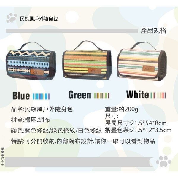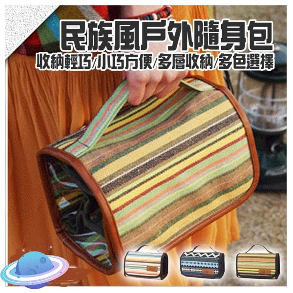 CLS 户外露營便攜收納包洗漱包 分格化妝袋 旅行化妝包 民族風整理袋 多功能收納包 梳洗用品收納 多用途收納袋 沐浴摺疊包 折疊隨身包 盥洗旅行包 便攜野餐包(綠色) 野餐用品