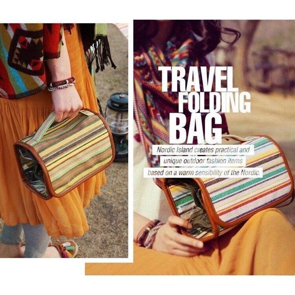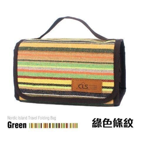 CLS 户外露營便攜收納包洗漱包 分格化妝袋 旅行化妝包 民族風整理袋 多功能收納包 梳洗用品收納 多用途收納袋 沐浴摺疊包 折疊隨身包 盥洗旅行包 便攜野餐包(綠色)